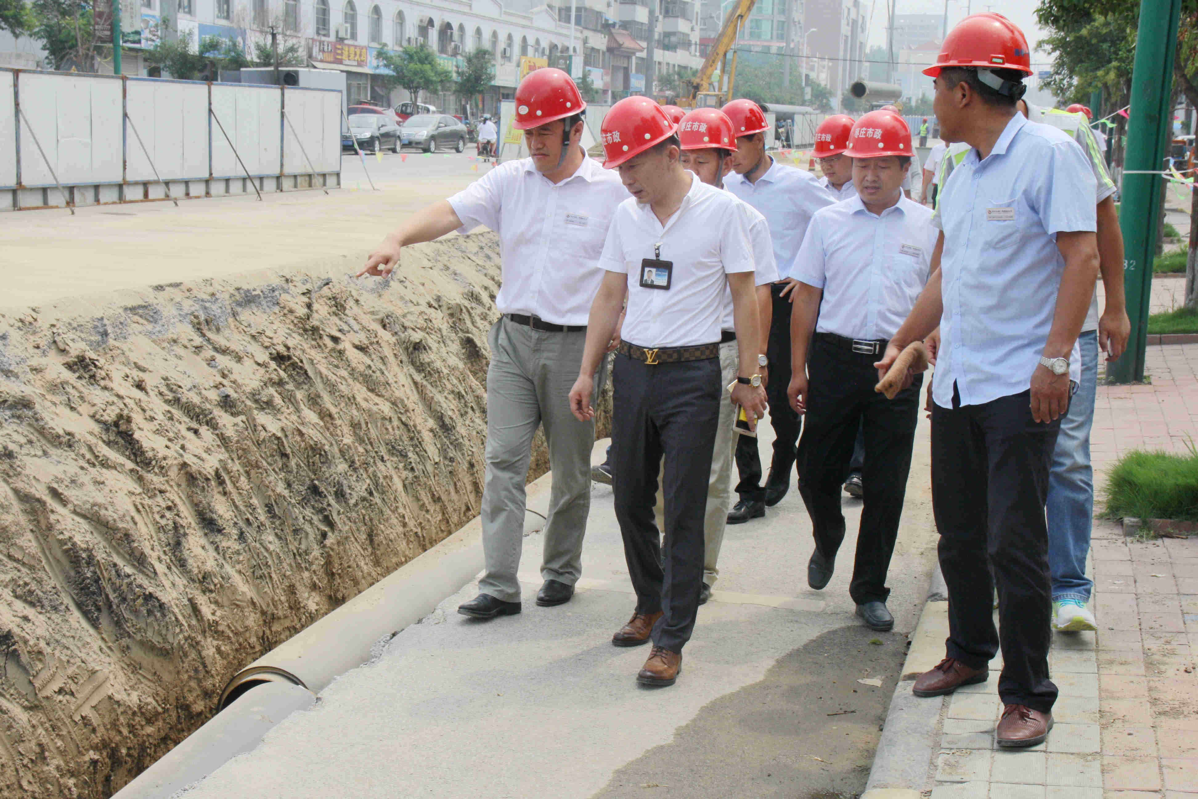 隨后,檢查組一行沿著管溝沿線邊走邊看邊詢問,詳細了解了工程施工工序、工程進度安排并聽取了項目經(jīng)理對工程進展情況及工程施工難點等方面問題的匯報。通過實地檢查,趙峰董事長對工地現(xiàn)場管理及工程施工質(zhì)量表示了充分肯定。同時,也指出了工程施工過程中存在的問題。他指出,施工現(xiàn)場在用電設施安裝使用方面還需要進一步加強規(guī)范安裝和規(guī)范操作;工地圍擋范圍內(nèi)的溝槽圍擋還要進一步按照單位內(nèi)部施工規(guī)范要求做好,加大安全巡查和管理力度,徹底消除安全隱患,確保施工安全。在安全文明施工方面,要嚴格按照安全文明工地標準要求做好現(xiàn)場文明施工工作。同時注意做好細部處理工作,將工地揚塵、噪聲降至最低,渣土垃圾及時清運打掃干凈。在保證工程施工質(zhì)量的同時,向沿線居民及全社會樹立好棗莊市政優(yōu)質(zhì)品牌工程良好形象,不斷增強公司在當?shù)氐钠放朴绊懥Α?/p>