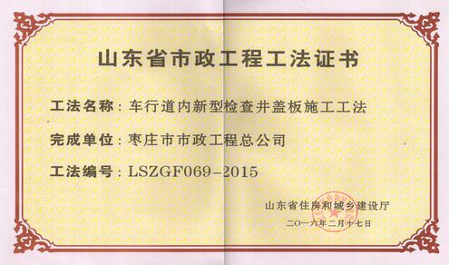 近日從山東省市政協(xié)會(huì)獲悉,我公司于2015年11月申報(bào)的“車行道內(nèi)新型檢查井蓋板施工工法”被山東省住房和城鄉(xiāng)建設(shè)廳批準(zhǔn)為省市政工程工法。