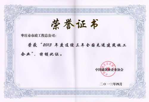 2013年度連續(xù)三年全國(guó)先進(jìn)建筑施工企業(yè)