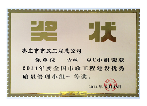“古城”QC小組榮獲2014年度全國市政工程建設優(yōu)秀質(zhì)量管理小組一等獎
